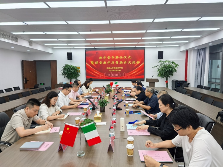 在课堂教学质量提升工作交流环节,与会人员围绕《南通大学课堂教学质量提升方案》的具体要求展开深入研讨,结合学院中意合作课程的特点,就优化课程体系、强化过程评价、推动智慧教学等方面提出了多项建设性意见。教学督导与各专业负责人还就如何进一步融合中意优质教育资源、提升课程教学效果等议题进行了充分交流。