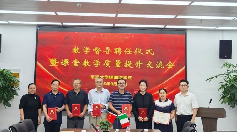 徐一鸣院长宣读了学院关于聘任王金华、邓自发、朱新宇、邱爱兵、张晓丽、王娟六位同志为教学督导的决定,并逐一颁发聘书。徐院长在致辞中指出,教学督导是学院教学质量监控体系的重要力量,特别是在中意合作办学背景下,督导工作更要立足国际化视野,坚持“以督促教、以导促改、评建结合”的原则,加强对中意合作课程的教学质量监督与指导,助力学院打造高水平、有特色的国际合作教育品牌。